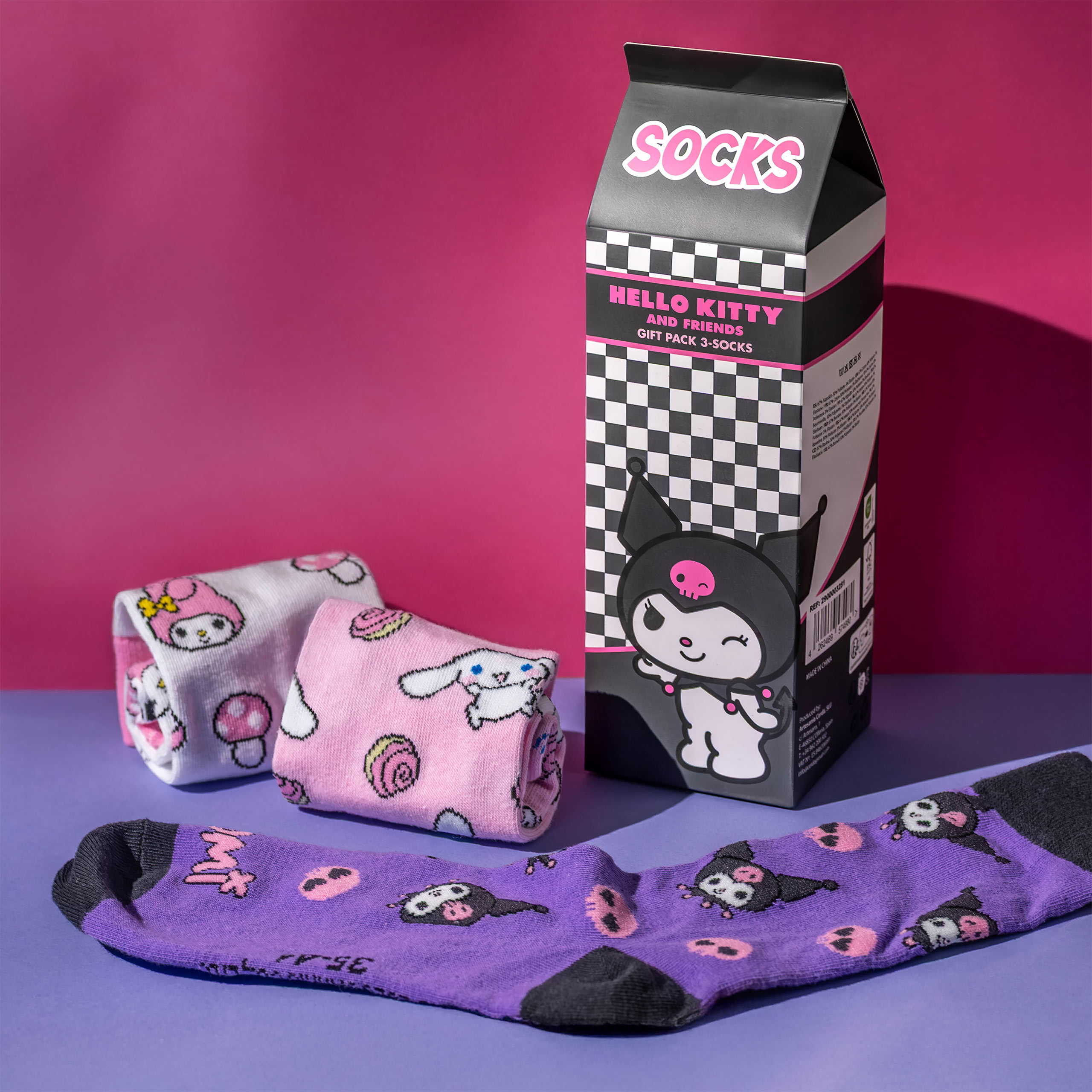 Sanrio - Hello Kitty and Friends lot de 3 paires de chaussettes en boîte cadeau - 40-46 - Sanrio