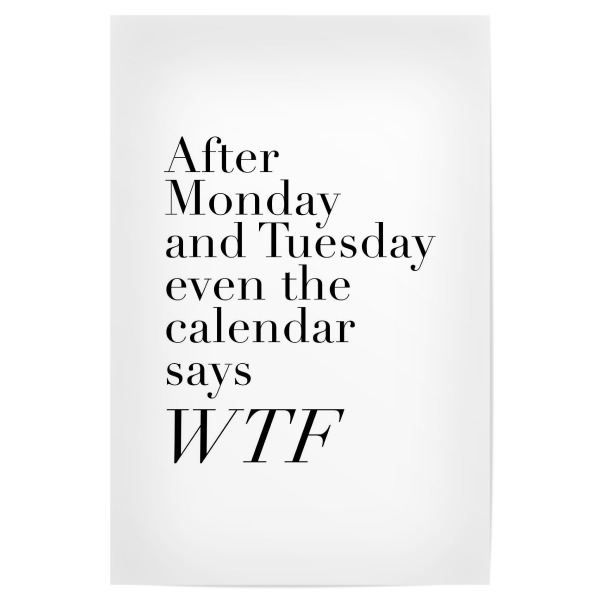 Poster "After Monday And Tuesday Even The Calendar Says WTF" artboxONE - Typografie,Schwarzweiß