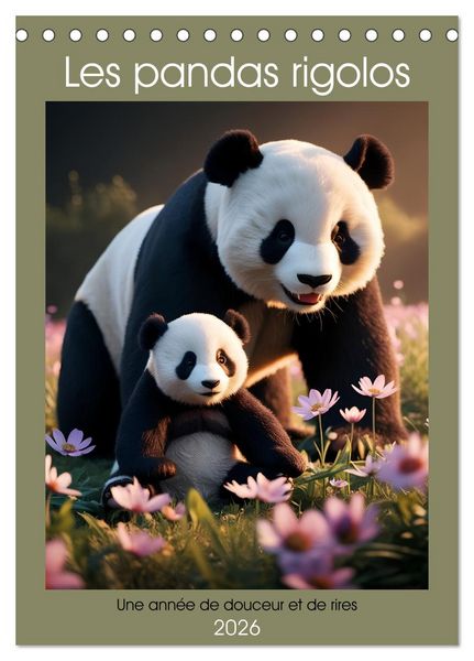 Les pandas rigolos - Une année de douceur et de rires (Calendrier de bureau 2026 DIN A5 horizontal), CALVENDO calendrier mensuel