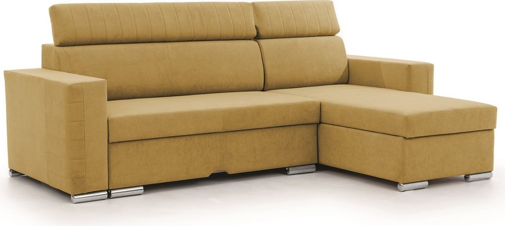 Ecksofa Schlafsofa Sofa CANTON in Stoff Camelia Senfgelb Ottomane Rechts
