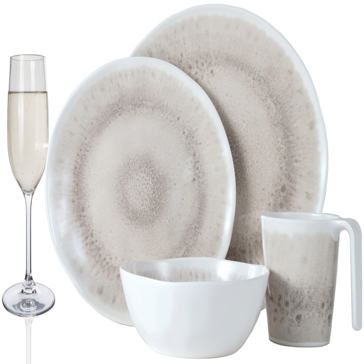 Moritz Melamin Camping Geschirr Set 4 Personen Amboss Design 16 Teilig + 4 Champgner Gläser Flûtes Tafelgeschirr Picknick BBQ Kochgeschirr