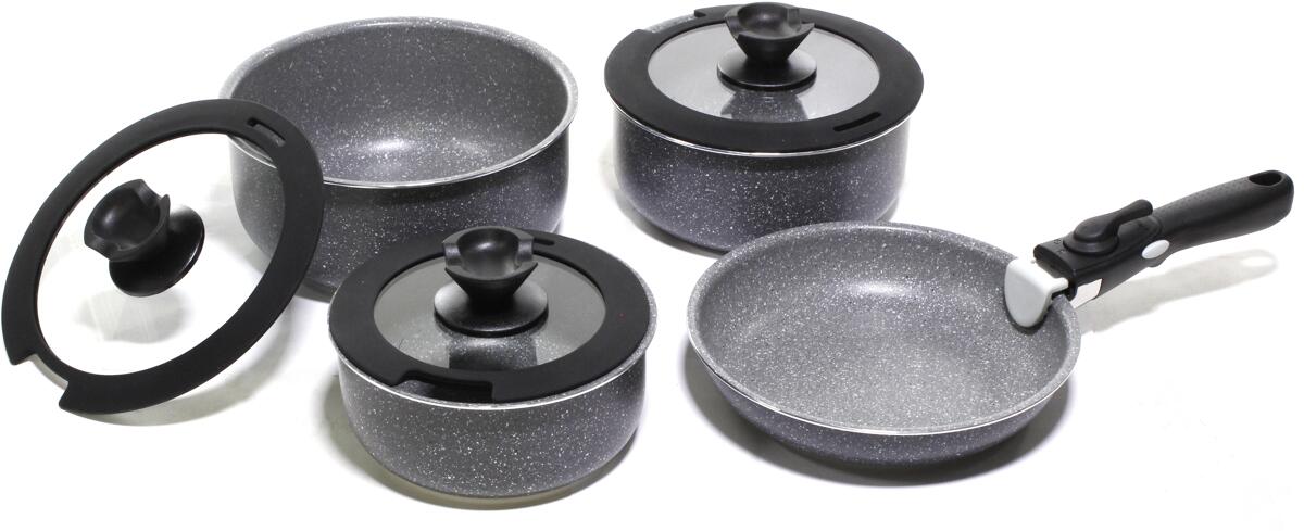 Camp4 92316 Topf-Set Pfanne Kochgeschirr 8tlg. Antihaftbeschichtung Aluminium Camping Outdoor grau
