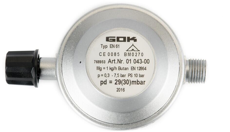 GOK Gasdruckregler, Campingaz 1/4" links, 30mbar