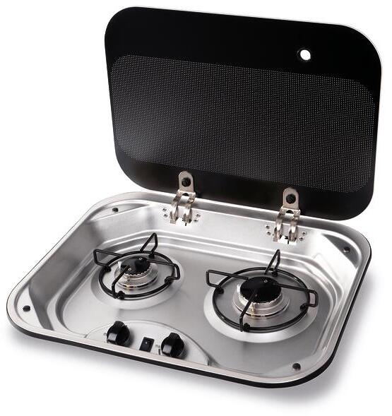 Carbest Gaskochfeld Campingkocher Gaskocher Glasabdeckung 2-flammig max. 30mbar Edelstahl