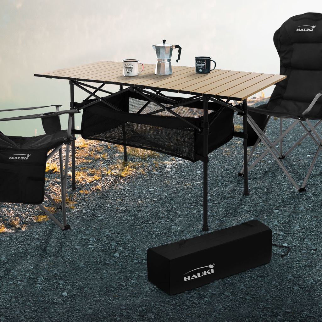 Hauki Campingtisch faltbar, 118x55x64,5 cm, Beige, Klapptisch aus Aluminium