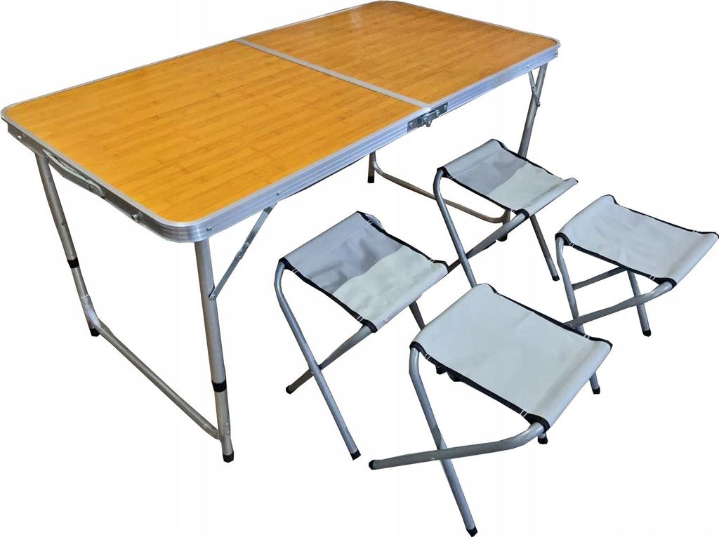 Campingtisch mit 4 Hockern Klappbar Höhenverstellbar 120x60 cm