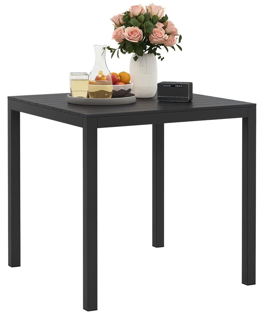 Gartentisch Aluminium 73x73 cm Wetterfest Buffettisch mit Holzoptik. Campingtisch fš¹r 4 Personen Schwarz