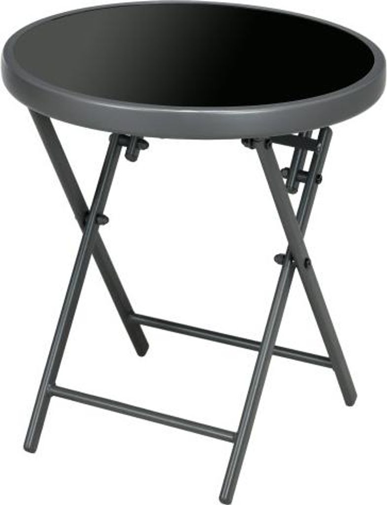 Campingtisch Schwarz Beistelltisch 45x45x50 cm Klappbar Klapptisch Aus Glas Kleiner Runder Sofatisch Balkontisch Fuer Balkon Terrasse Wohnzimmer Buero