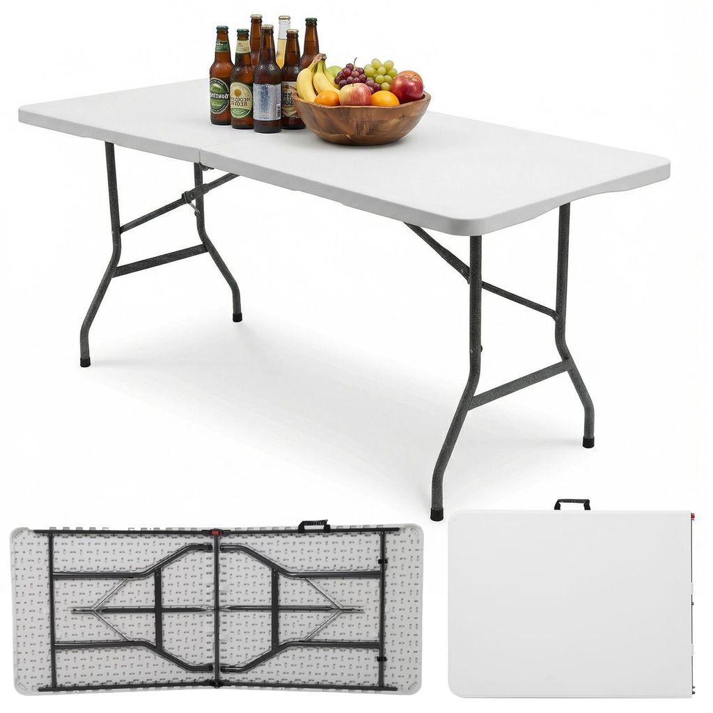 Sekey Buffettisch Klappbar Campingtisch Kunststoff mit Tragegriff, 152x70cm, Weiß