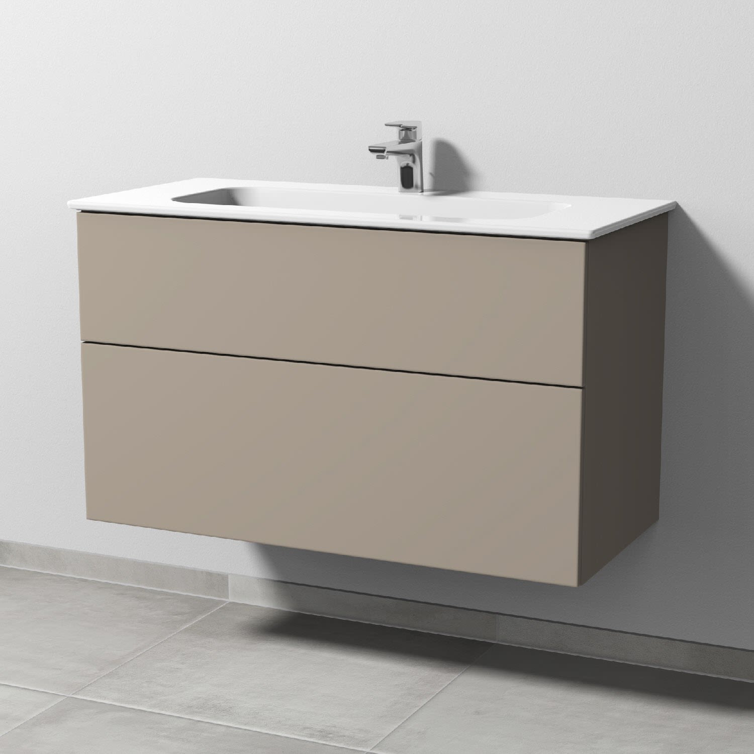 Sanipa 3way Waschtischunterbau für Keramik-Waschtisch Pro A 105 cm, 2 Auszüge mit Push to open, Badmöbel,