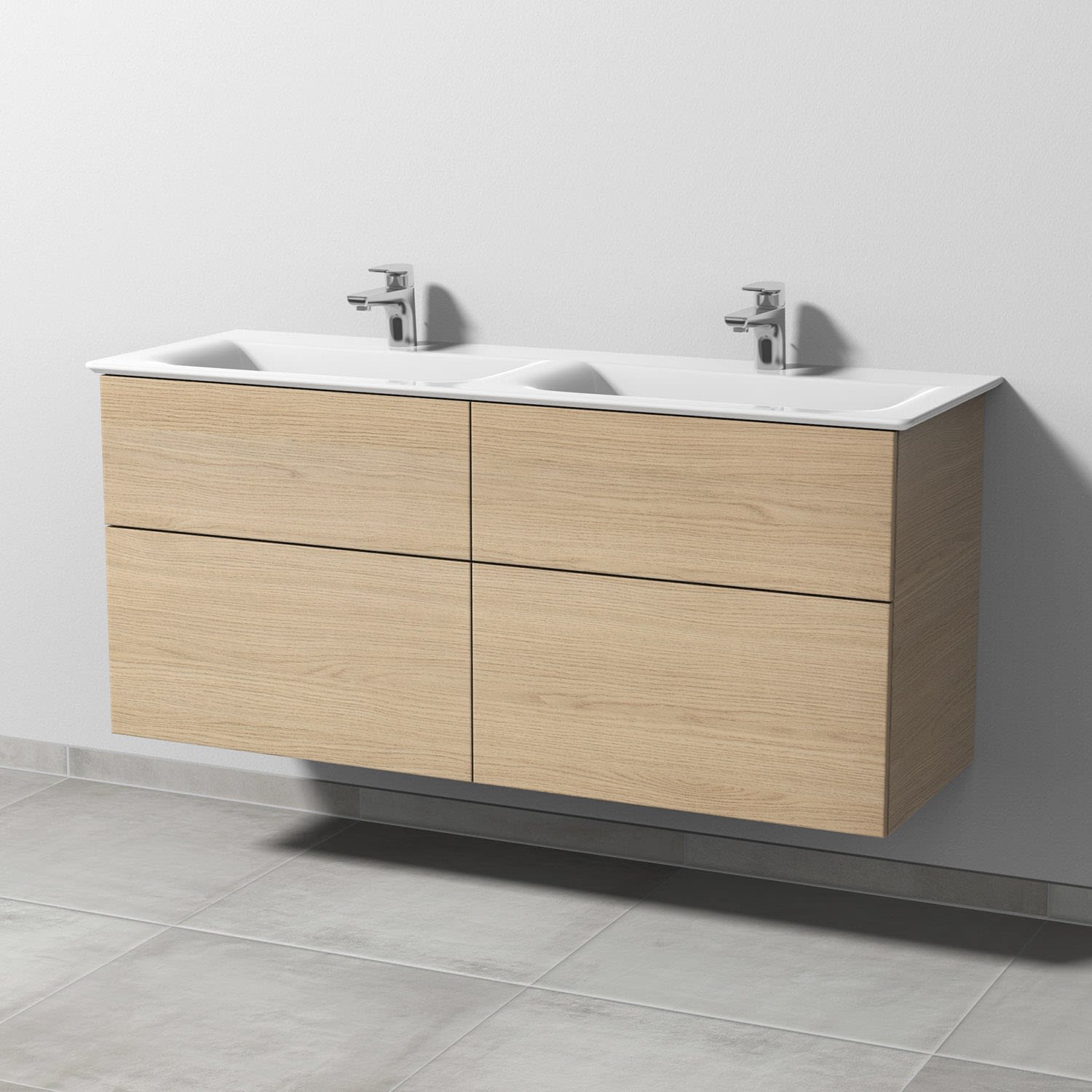 Sanipa 3way Waschtischunterbau für Keramik-Doppelwaschtisch Smyle Square 120 cm, 4 Auszüge mit Push to open, Badmöbel,