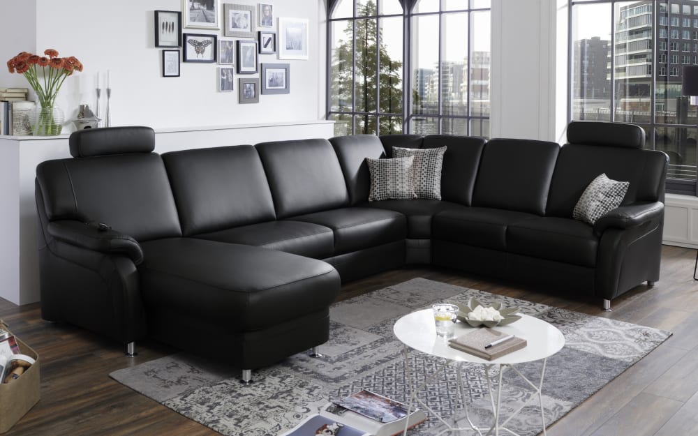 SYSTEMPOLSTER Leder Wohnlandschaft PN-EM06001, schwarz, Canape links, inkl. Kopfstützen