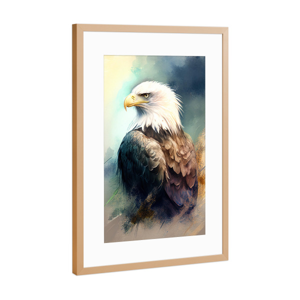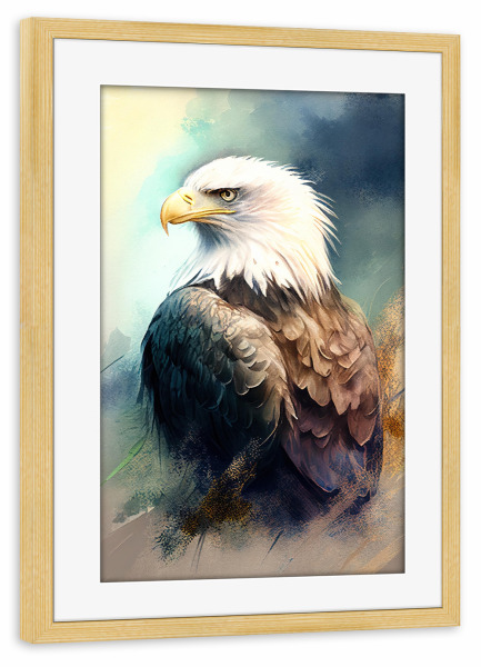 Poster mit Rahmen kiefer "Bald Eagle watercolor" artboxONE - Tiere - Art,Bald eagle,Beautiful,Bird,Canvas,Drawing,Nature,Paint,Painting,Watercolor