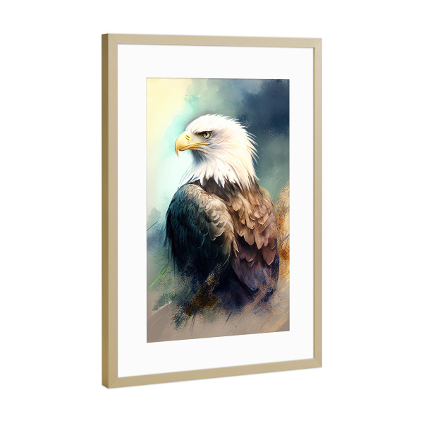 Poster mit Rahmen Gold "Bald Eagle watercolor" artboxONE - Tiere - Art,Bald eagle,Beautiful,Bird,Canvas,Drawing,Nature,Paint,Painting,Watercolor