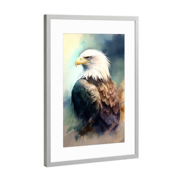 Poster mit Rahmen Silber "Bald Eagle watercolor" artboxONE - Tiere - Art,Bald eagle,Beautiful,Bird,Canvas,Drawing,Nature,Paint,Painting,Watercolor