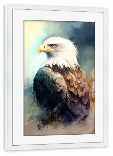 Poster mit Rahmen weiß "Bald Eagle watercolor" artboxONE - Tiere - Art,Bald eagle,Beautiful,Bird,Canvas,Drawing,Nature,Paint,Painting,Watercolor