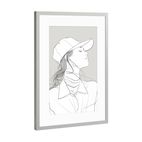 Poster mit Rahmen Silber "Wearing a cap" artboxONE - Menschen,Fashion - Female,Frau,Cap,Kappe,Fashion,Mode,Ki