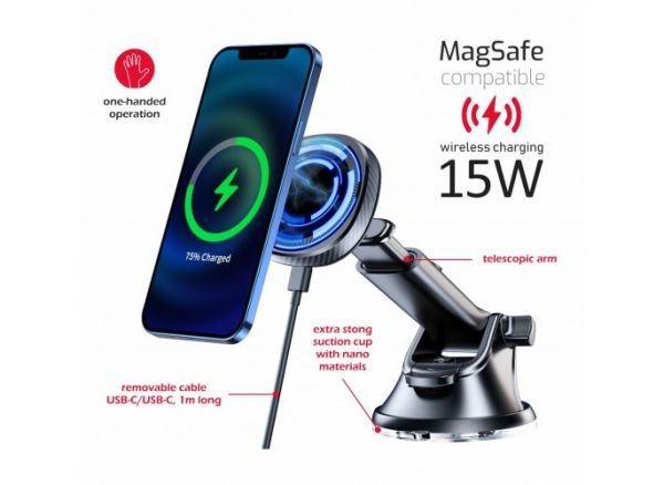MAGNETIC CAR HOLDER WITH Wireless CHARGER 15W DASHBOARD (MagSafe compatible) - Swissten