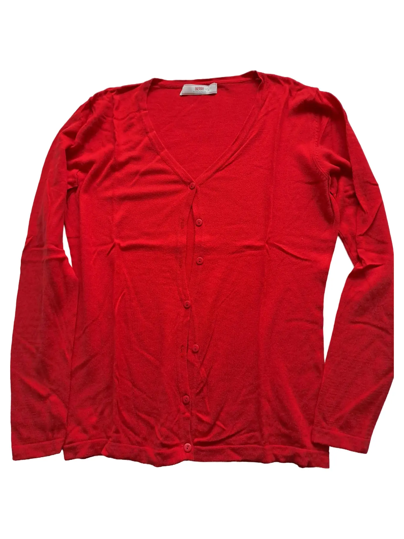 MARKENLOS Berri Sportswear Damen Strickjacke Gr. 40/L Rot V-Ausschnitt Cardigan