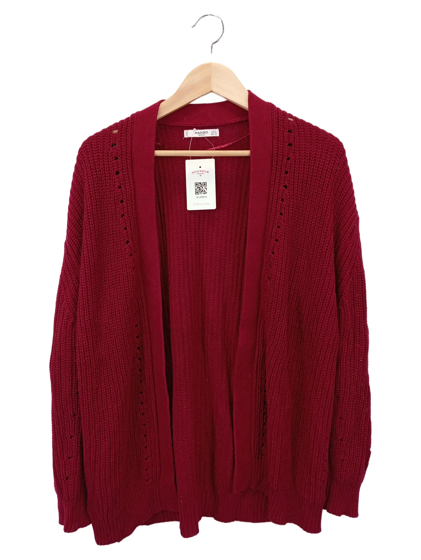 MANGO Damen Strickjacke Rot Gr. 36/S Casual Cardigan Lochmuster