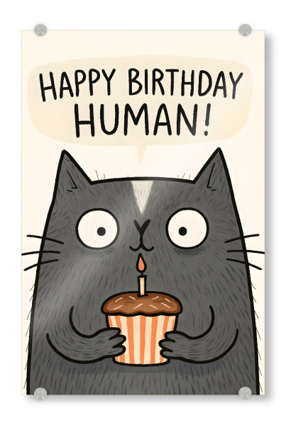 Acrylglasbild "Happy Birthday Human Cat Card" artboxONE - Tiere,Abstrakt,Lustig