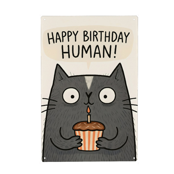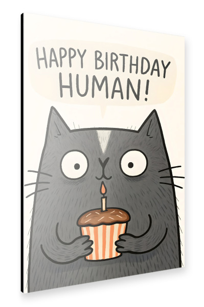 Metall Poster "Happy Birthday Human Cat Card" artboxONE - Tiere,Abstrakt,Lustig