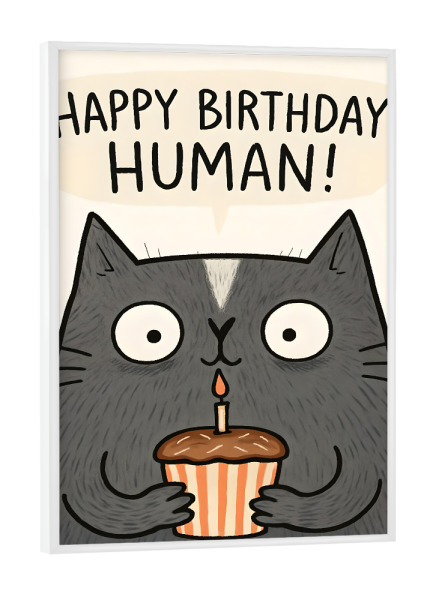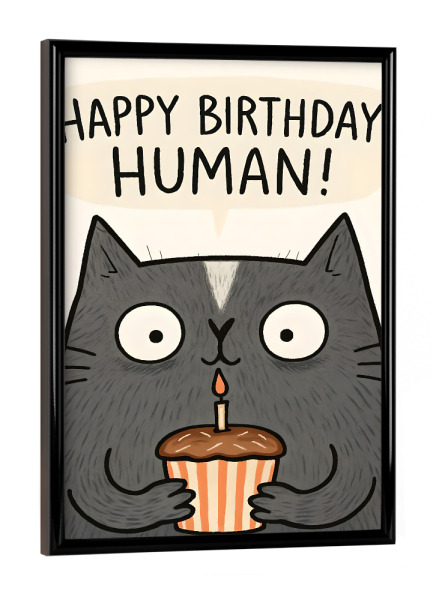 Poster mit schwarzem Rahmen "Happy Birthday Human Cat Card" artboxONE - Tiere,Abstrakt,Lustig