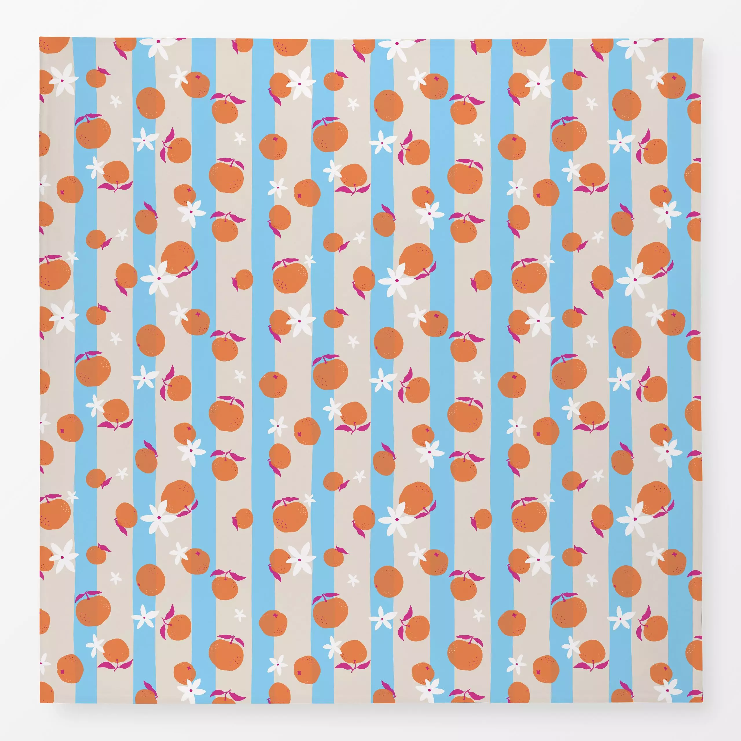 Tischdecke Orangen Blüten gestreift - Sommer, Symbole & Muster, Früchte - von „Carolin Vonhoff"; Obst, Blüten, Orange, Früch...
