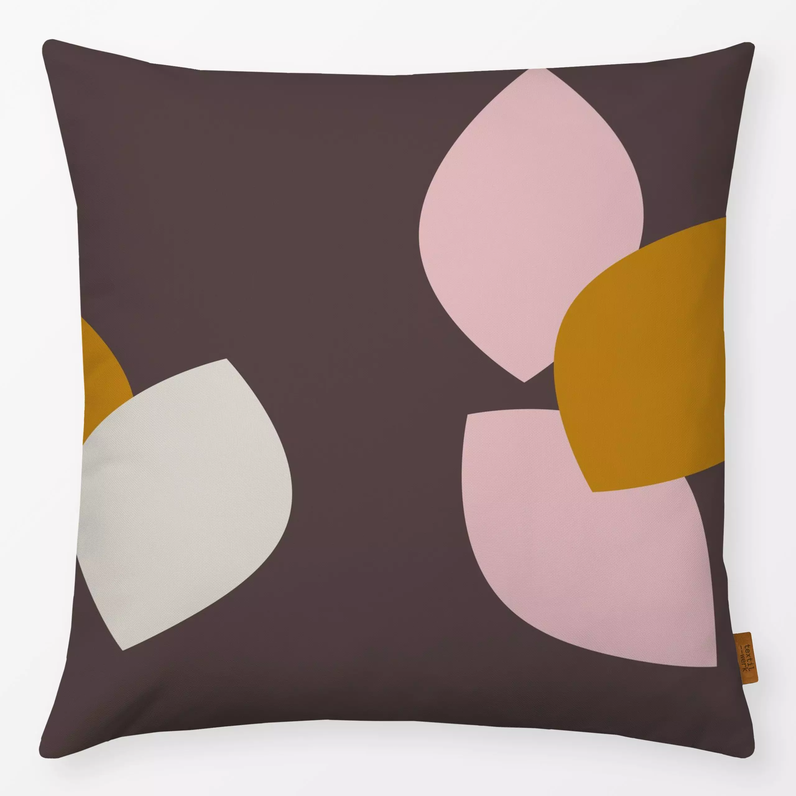 Kissen Muster Blätter braun gelb rosa - Herbst, Symbole & Muster - von „Carolin Vonhoff"; Muster, Punkte, altrosa, Blätter, ...