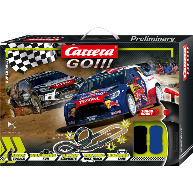 Carrera Go!!! Super Rally Autorennbahn, Maßstab 1:43, 6+ Jahre, Citroen DS3 WRC Red Bull, Citroen DS3 WRC Schwarz, Indoor Rennstrecke