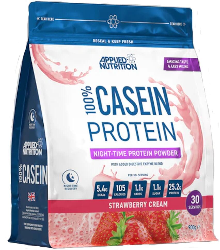 Applied Nutrition 100% Casein Night Time Protein, 900 g Beutel, Strawberry Cream