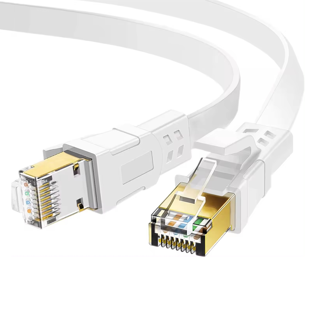 MobileKing Cat 8 LAN-Kabel flach 0,5 m Weiß – Highspeed Ethernet Netzwerkkabel bis 40 Gbit/s, RJ45, S/FTP, für Router, Gaming, PC & Smart TV