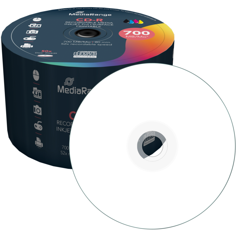 MediaRange CD-R 700 MB CD-Rohlinge, 52fach, 50 Stück, bedruckbar