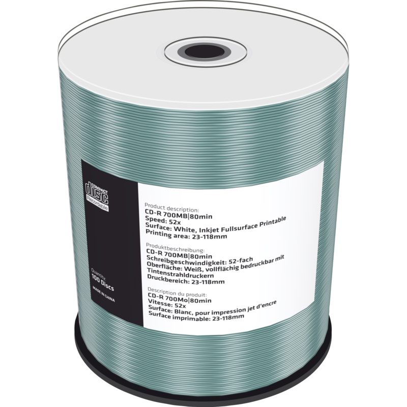 MediaRange CD-R 700 MB CD-Rohlinge, 52fach, 100 Stück, bedruckbar