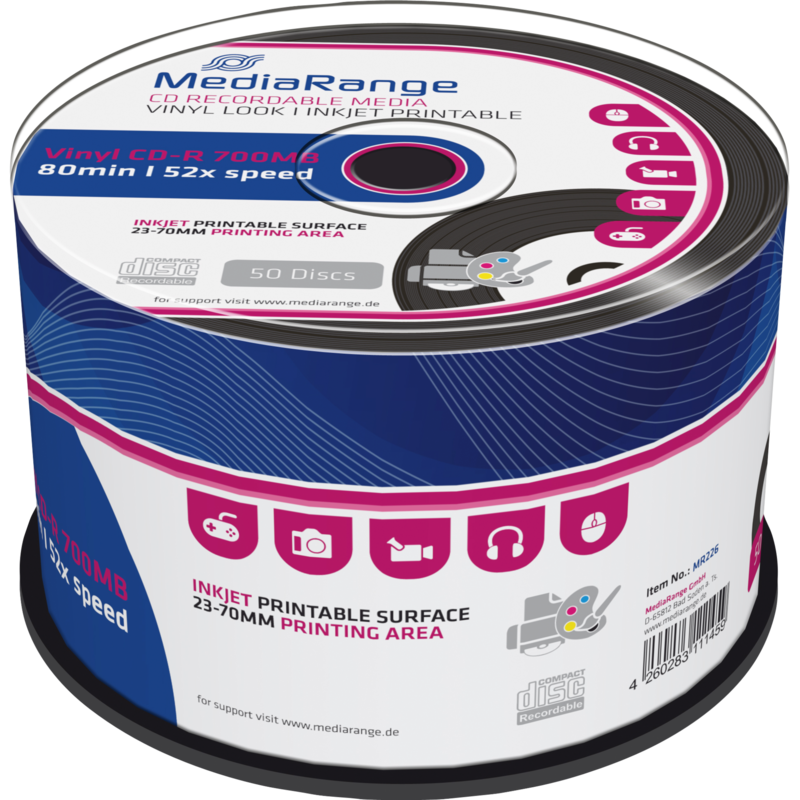 MediaRange CD-R 700 MB CD-Rohlinge, 52fach, 50 Stück, bedruckbar, Vinyl-Opt.