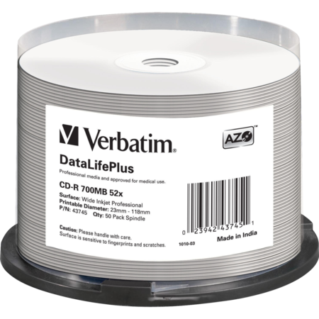 Verbatim CD-R 700 MB CD-Rohlinge, 52fach, 50 Stück, bedruckbar