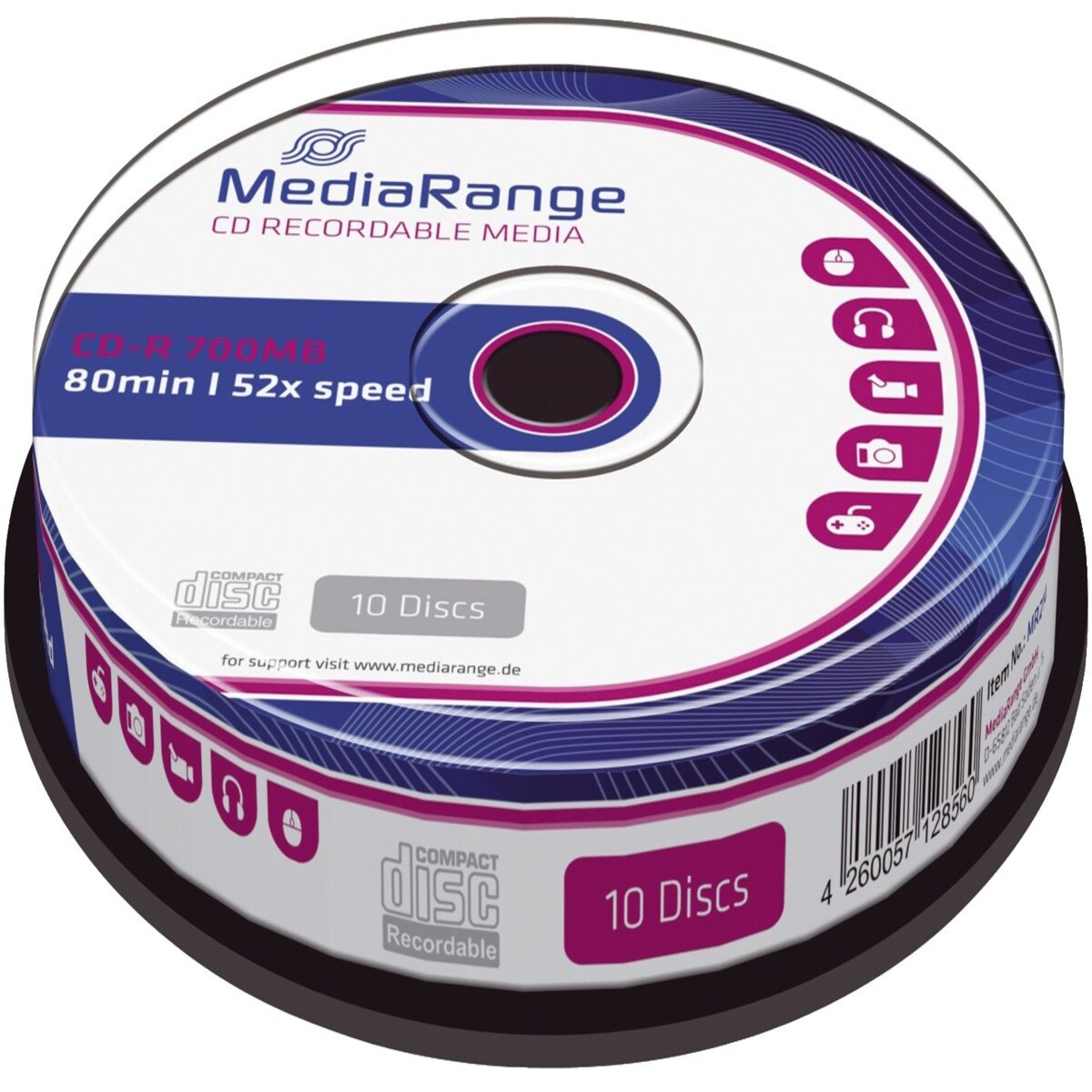 MediaRange CD-R 700 MB CD-Rohlinge, 52fach, 10 Stück