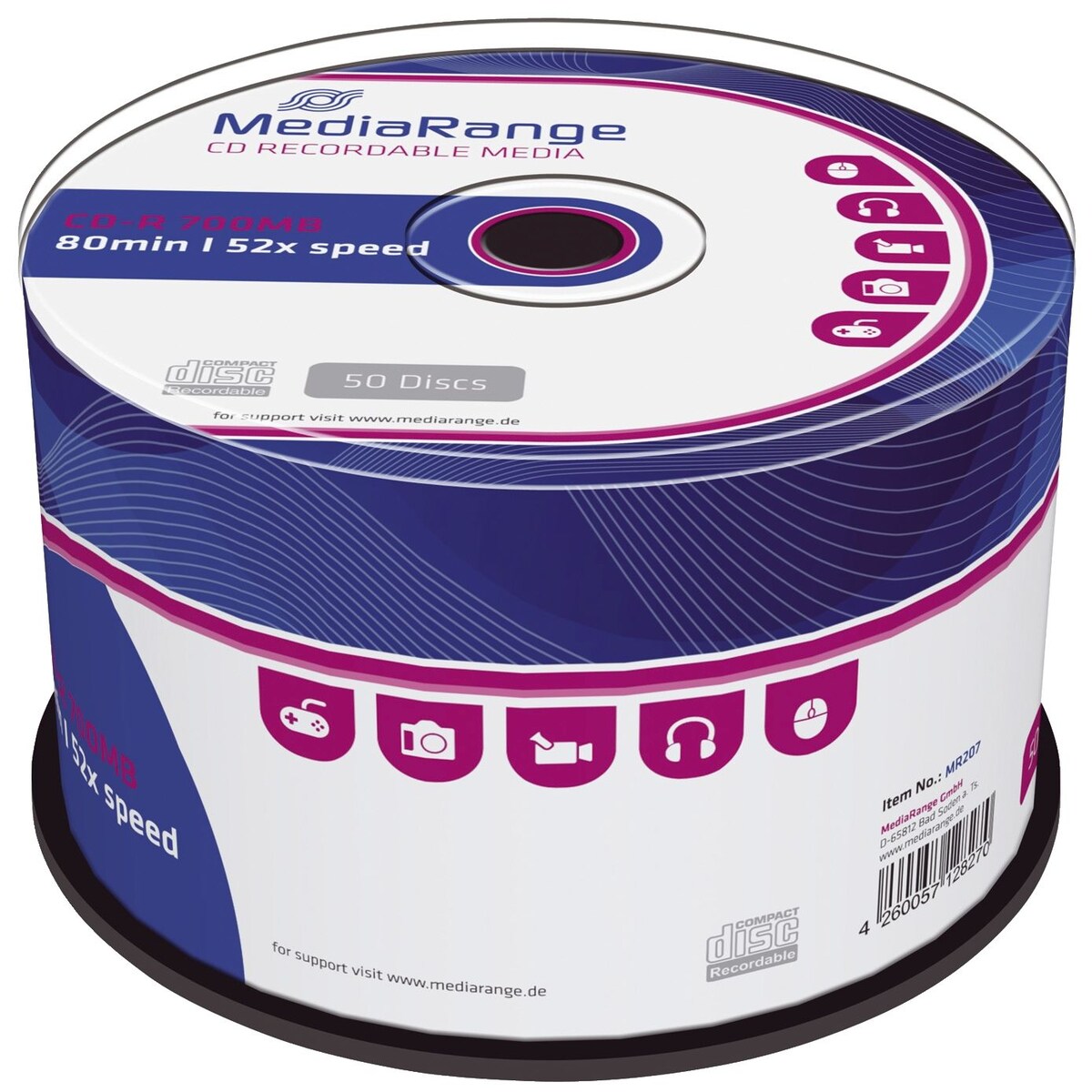 MediaRange CD-R 700 MB CD-Rohlinge, 52fach, 50 Stück