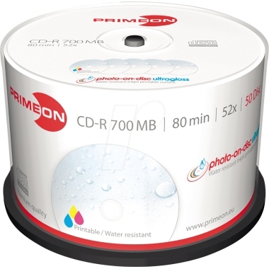 Primeon CD-R 80 Min./700 MB, bedruckbar, photo-on-disc, Spindel, PG=50ST, 52-fach