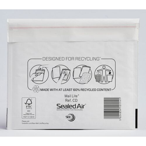 Mail Lite Luftpolster-Luftpolster-Versandtaschen CD Weiß Ohne Fenster 180 (B) x 160 (H) mm Abziehstreifen 79 g/m² 10 Stück