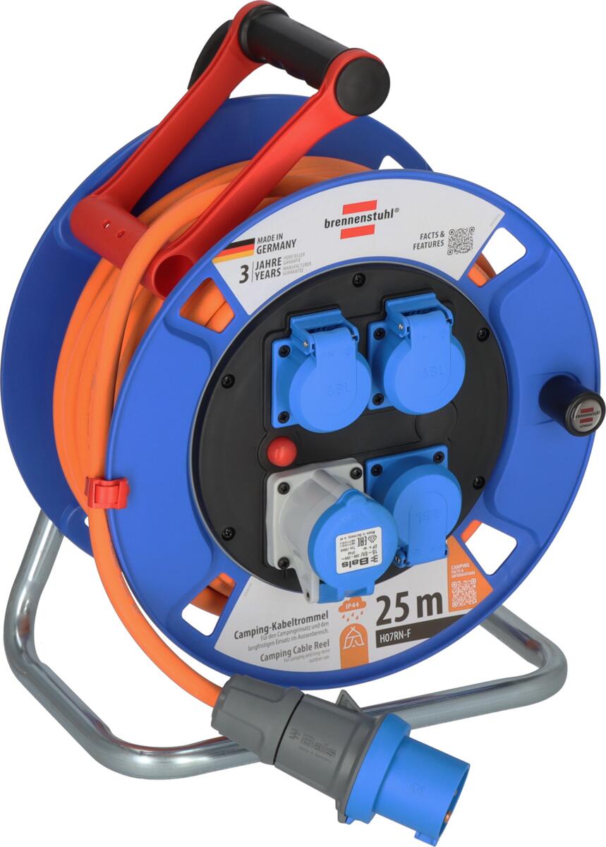 Brennenstuhl Camping-Kabeltrommel / CEE 230V Kabeltrommel 25m (H07RN-F 3G2.5 in orange CEE-Winkelkupplung inkl.