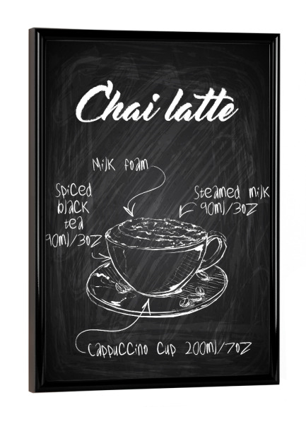 Poster mit Rahmen Schwarz (Metallic) "Chai latte" artboxONE - Essen & Trinken - Rezept,Drink,Trinken,Coffee,Bar,Zucker,Tasse,Cafe,Kaffee