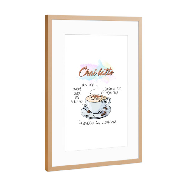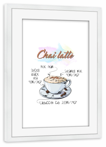 Poster mit Rahmen weiß "Chai latte" artboxONE - Essen & Trinken - Rezept,Drink,Trinken,Coffee,Bar,Zucker,Tasse,Cafe,Kaffee