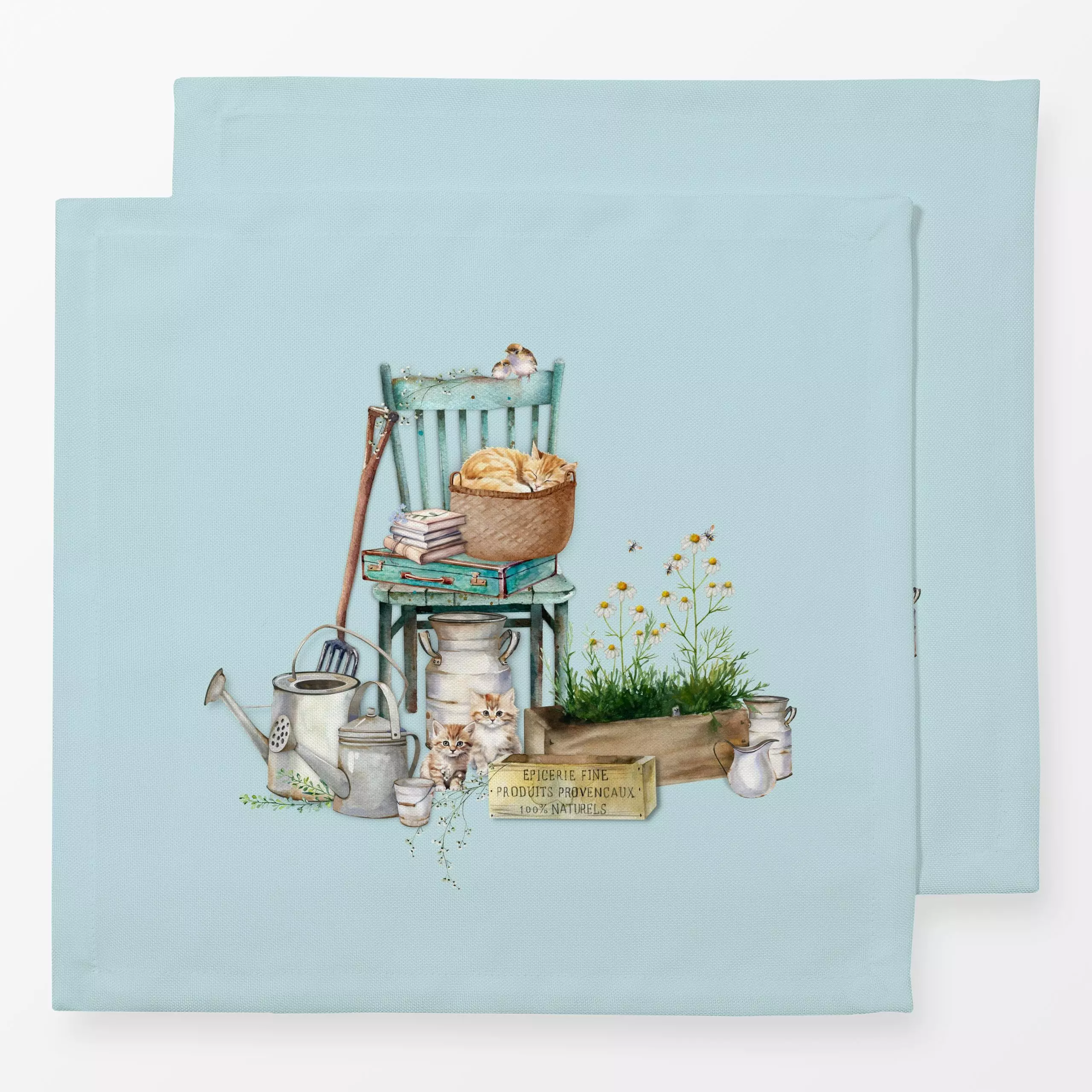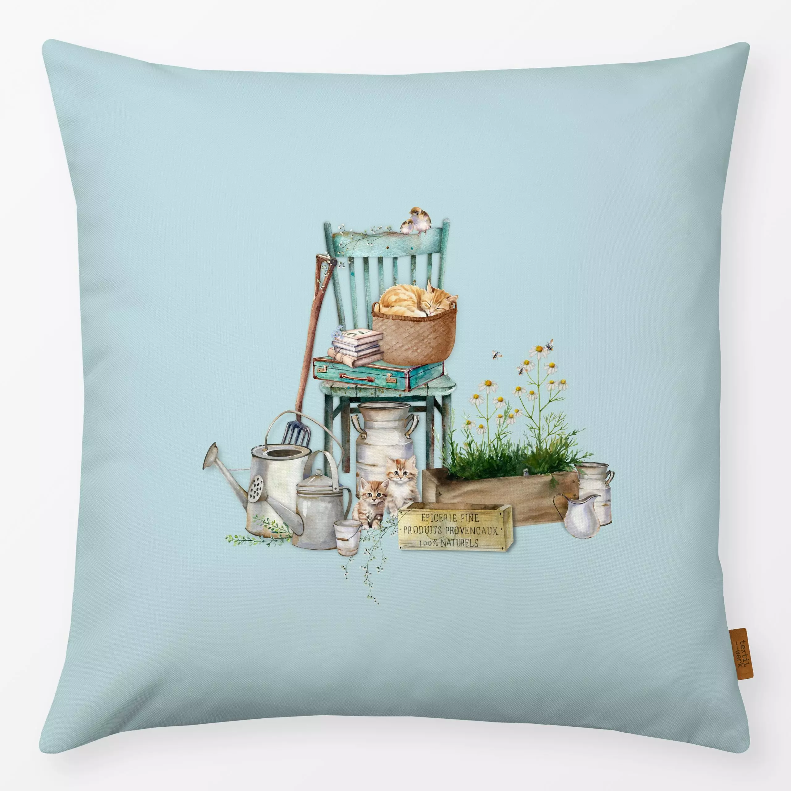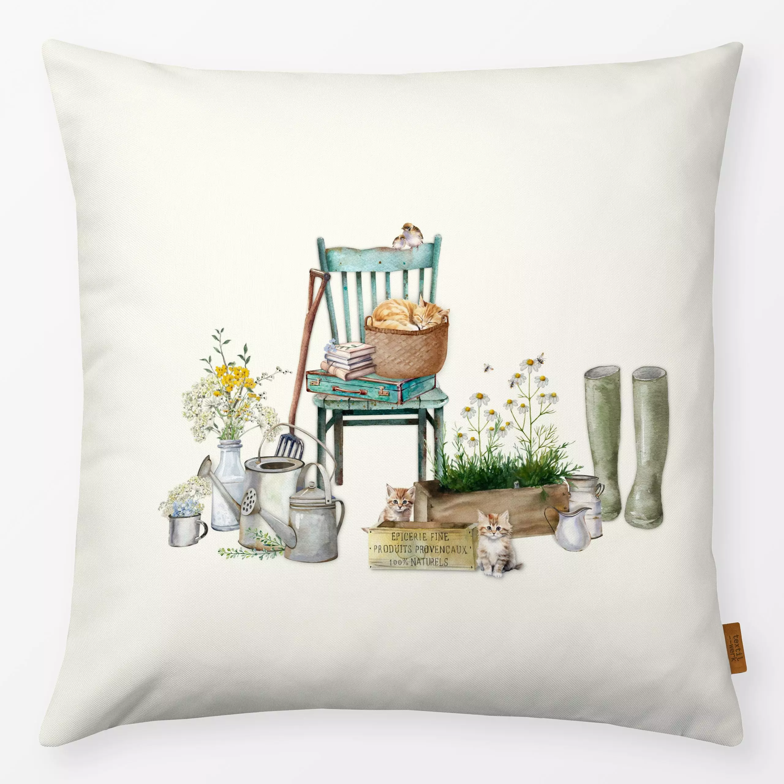Kissen Cottage Summer Garden Chair - Blumen & Florales, Sommer, Tiere - von „Monika Strigel"; Garten, Liebe, landhaus, Katze...