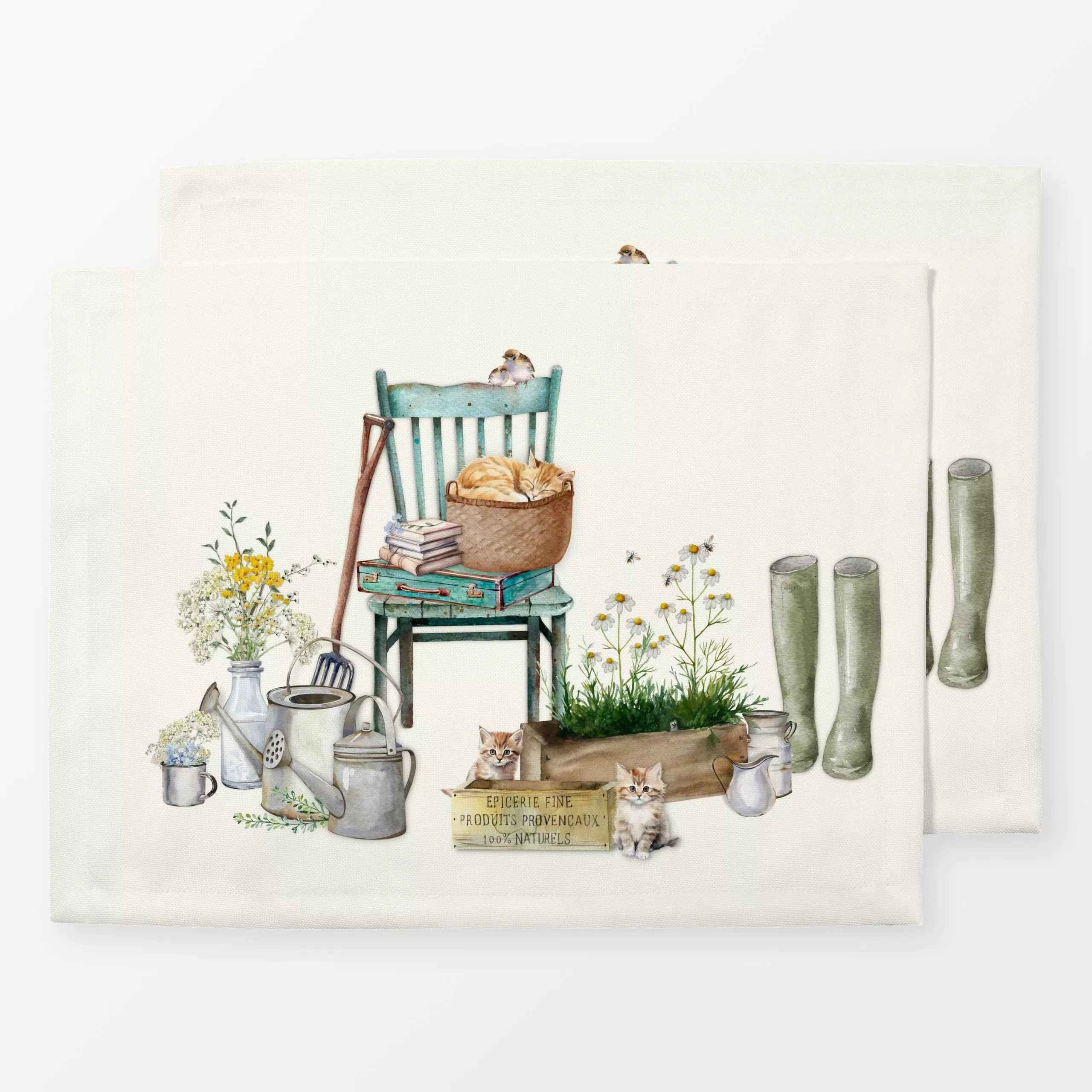 Tischset Cottage Summer Garden Chair - Blumen & Florales, Sommer, Tiere - von „Monika Strigel"; Garten, Liebe, landhaus, Kat...