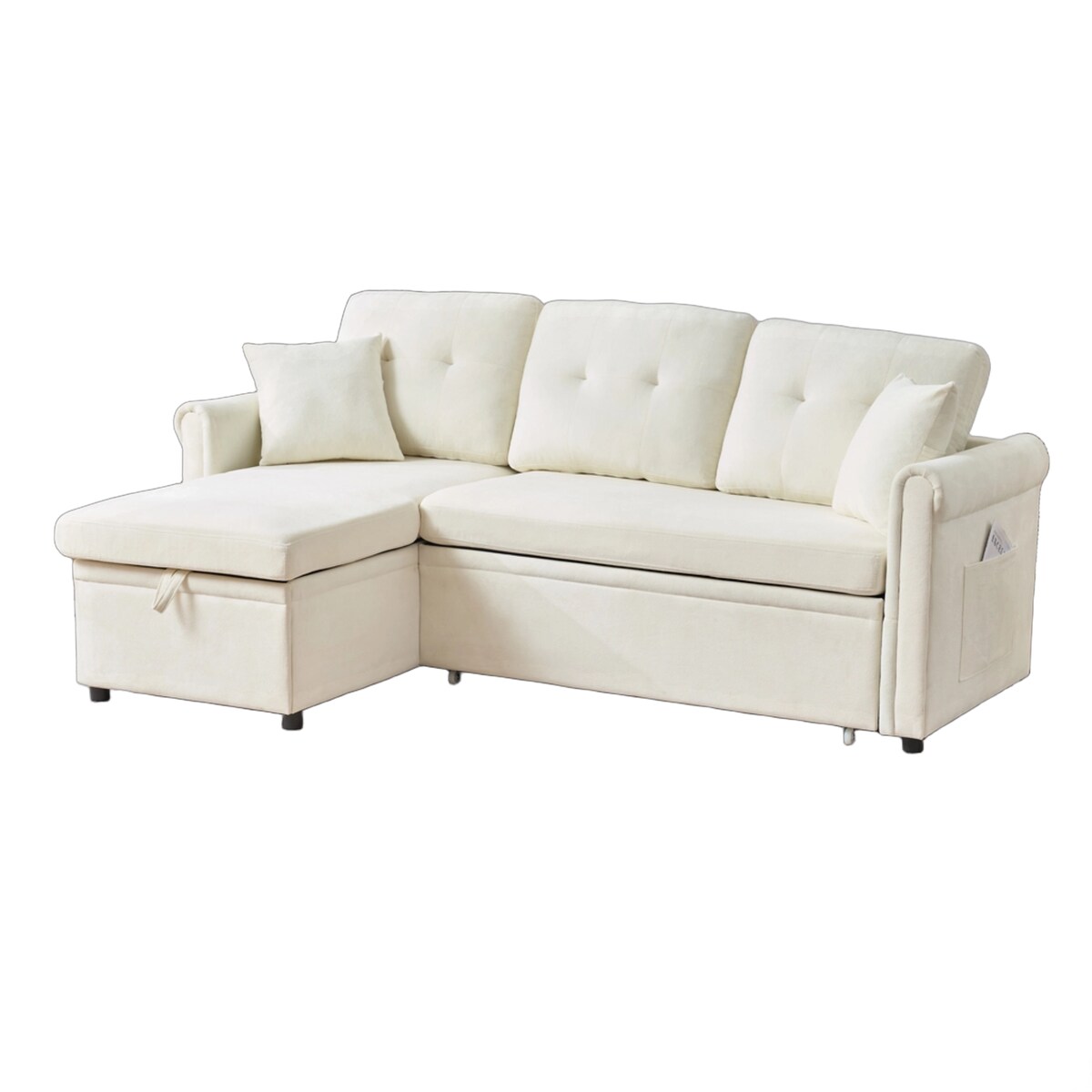 Beiges 3-Sitzer Sofa Chenille mit Chaise-Lounge Kissen Seitentaschen weicher Polsterung komfortables Wohnzimmermöbel 90x150cm