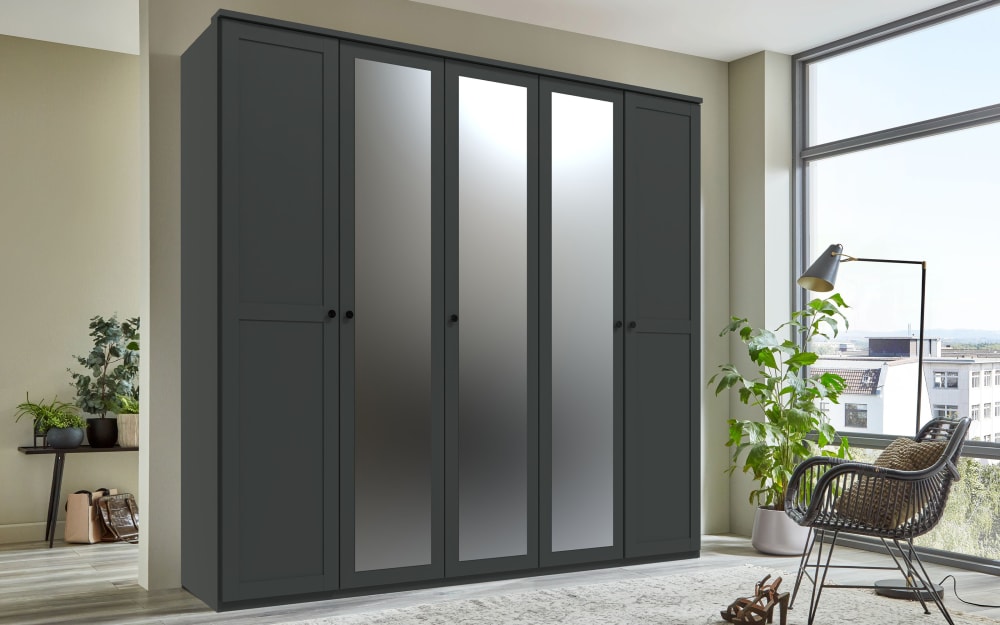 wimex Drehtürenschrank Chalet, graphit, 225 x 210 cm, mit Spiegeltüren graphit/Spiegel MDF, Glas 225 cm