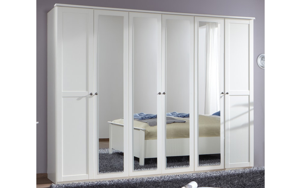 wimex Drehtürenschrank Chalet, weiß, 270 x 210 cm, mit Spiegeltüren weiß/Spiegel MDF, Glas 270 cm