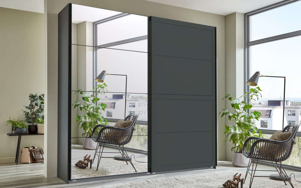 wimex Schwebetürenschrank Chalet, graphit, Spiegeltür, 180 x 208 cm graphit/Spiegel MDF, Glas 180 cm
