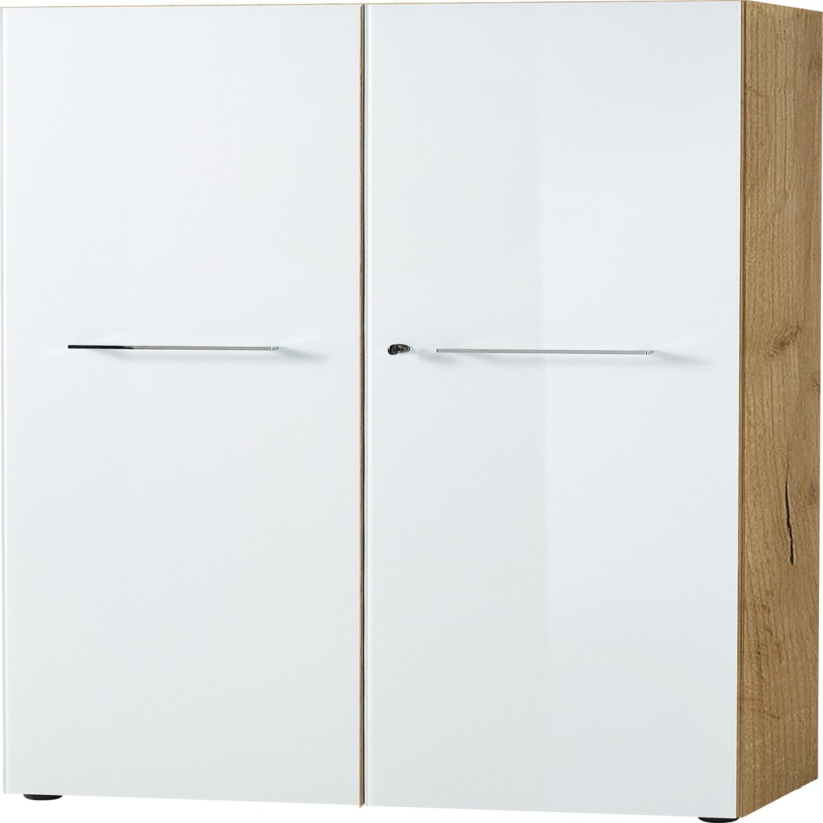 Aktenschrank 5 Ordnerhöhen 80x196x37 cm | Abschließbar, Soft-Close, Glasfront | Made in Germany | Chalet-Eiche-Nb./Weiß Serie `Muenchen` Kadima Design